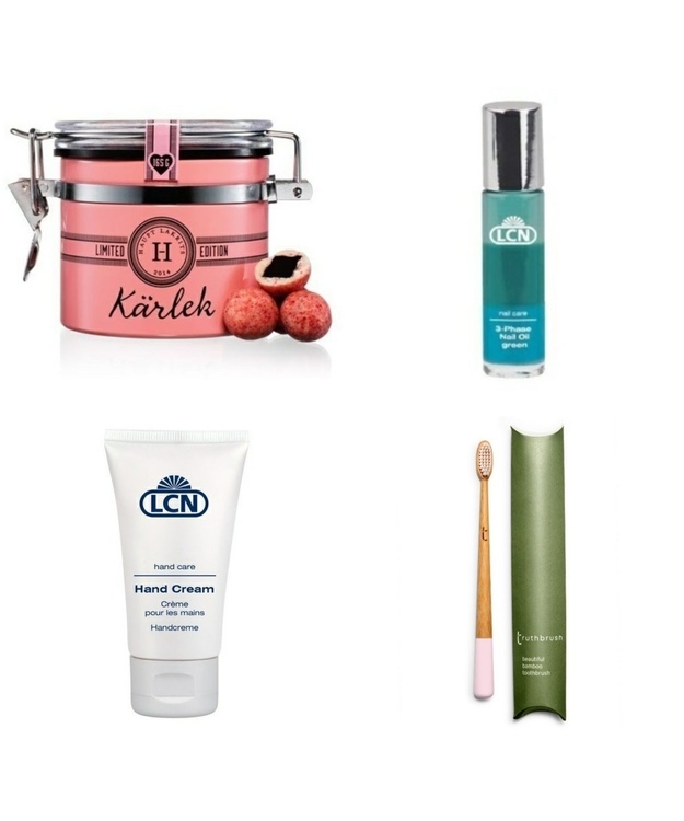 Paketti sisältää herkullista Haupt Lakritsin lakritsia, käsivoiteen, kynsinauhaöljyn sekä ekologisen bambuhammasharjan!